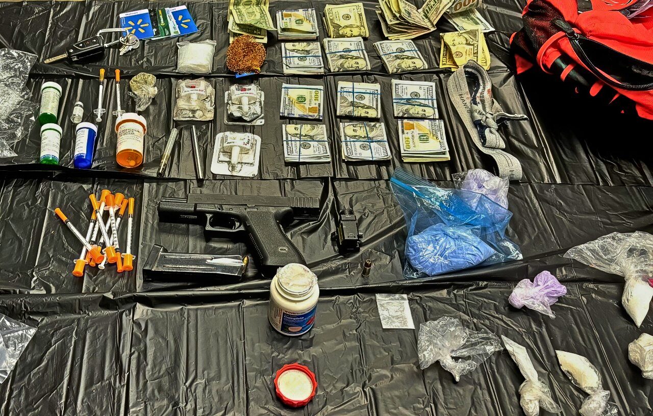 Agents seized fentanyl, cocaine, Alprazolam, drug paraphernalia, a 9 mm handgun, and close to $10,000 in cash.