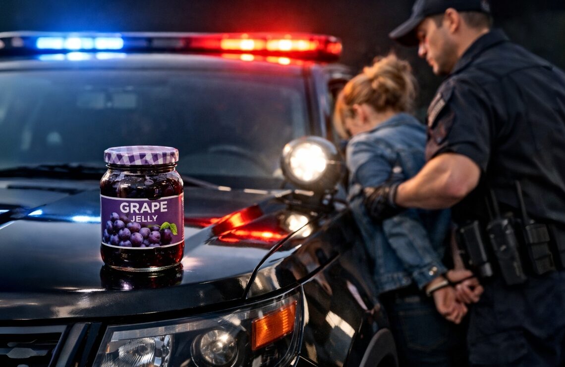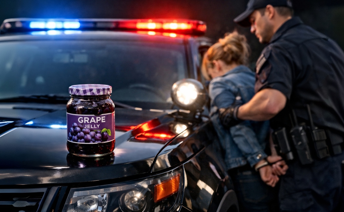 Officers were called to the store after a report of a female shoplifter described as wearing a black jacket, tie-dye pants, dirty-blonde hair, and carrying a brown bag—with grape jelly among the items taken. The suspect reportedly left on foot toward Speedway.