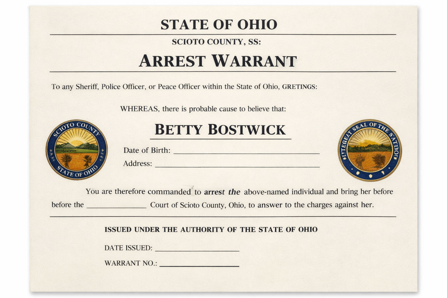 Scioto County Municipal Court has issued an arrest warrant for the dog’s owner, Betty Bostwick, in connection with the attack that left a woman seriously injured and missing part of her hand.